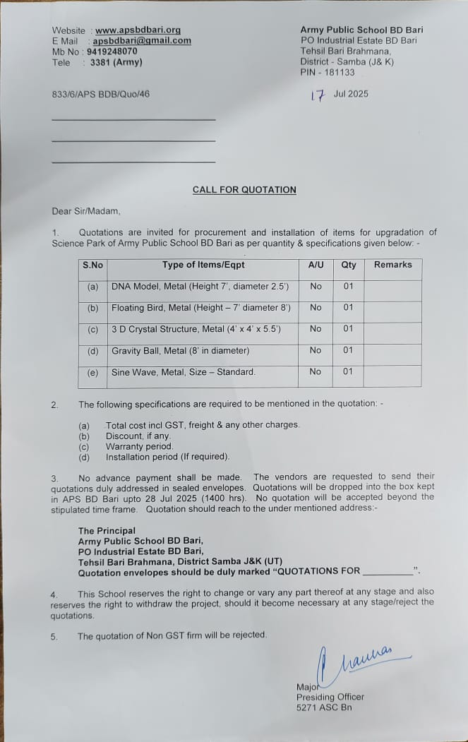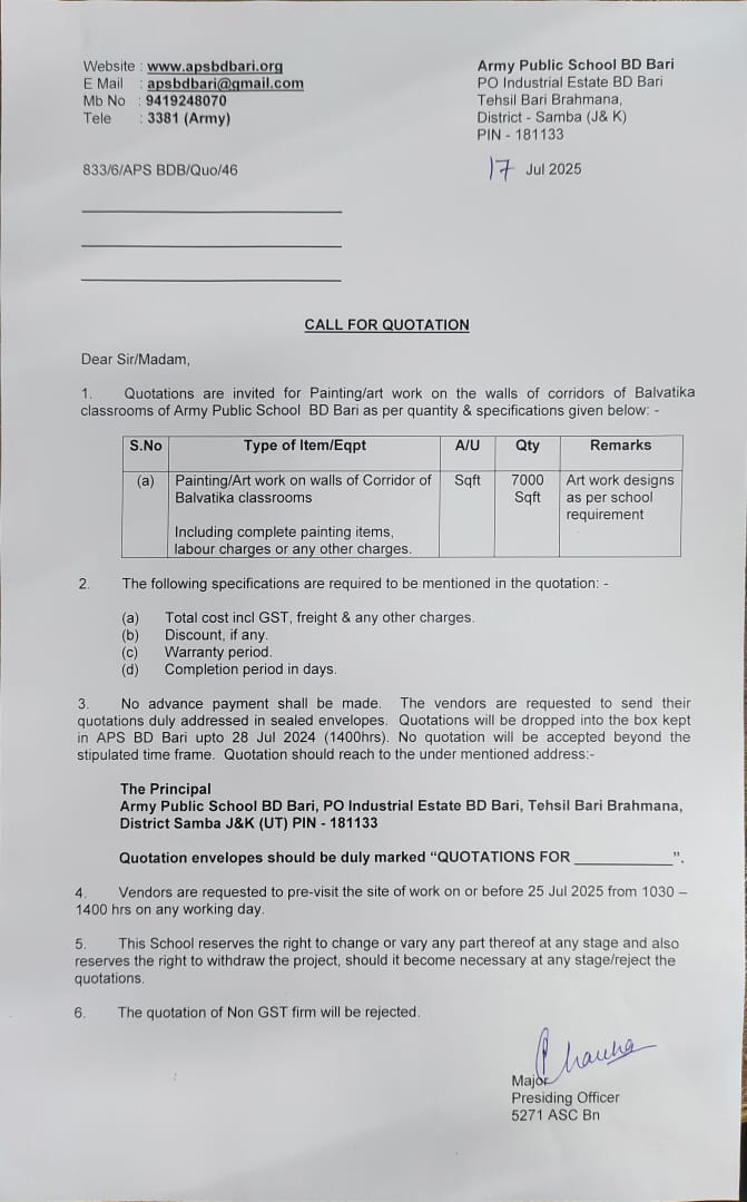 Call for Quotations - Publication of School Journal for the Academic Session 2025-26